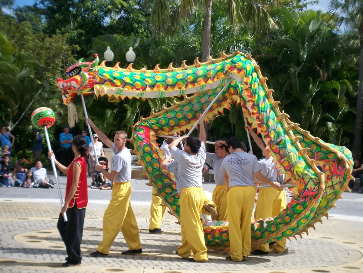 Stretching over 50 feet, the dragon ripples through the air in wave-like patterns, each section guided by the rhythm of drums, gongs, and cymbals. Every color on the dragon carries meaning: green for growth, gold and silver for prosperity, yellow for honor, and red for good fortune.